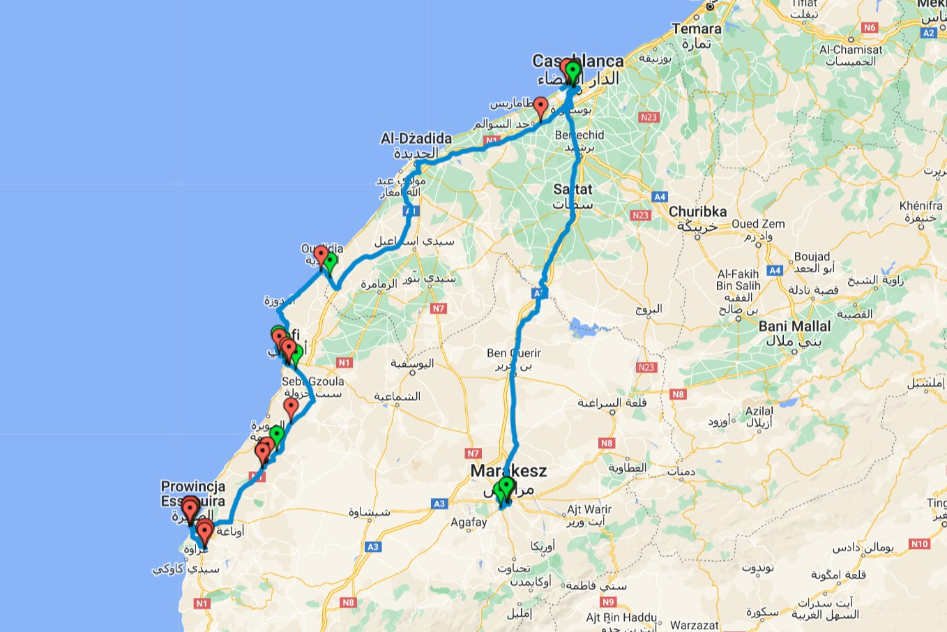 Dzień 4 Przejazd autobusem: Casablanka – Essaouira 8:45-15.45 375 km, 7 godz.