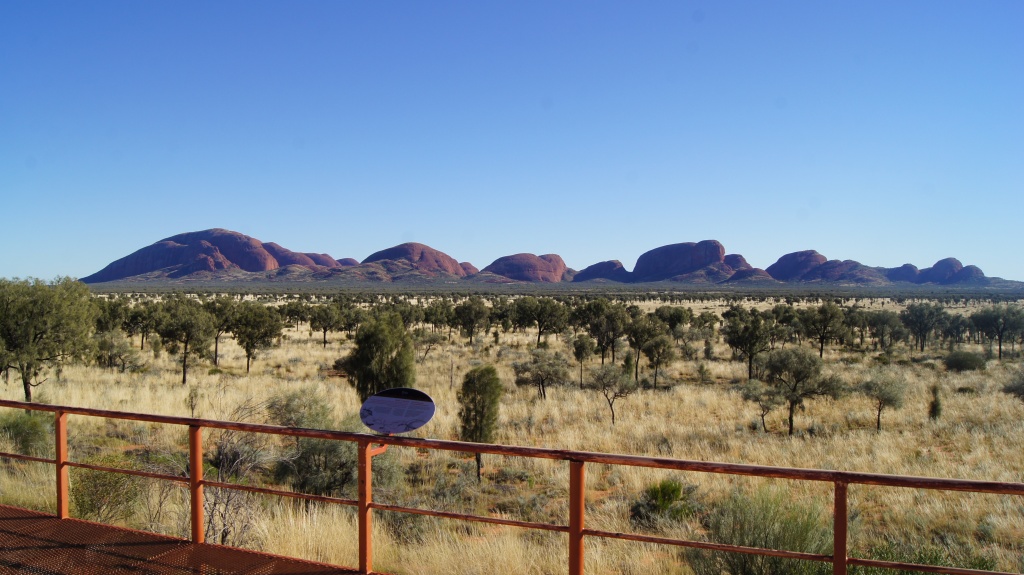 Czas jednak na Kata Tjuta (Olgas). Od góry Uluru to odległość około 40 km.