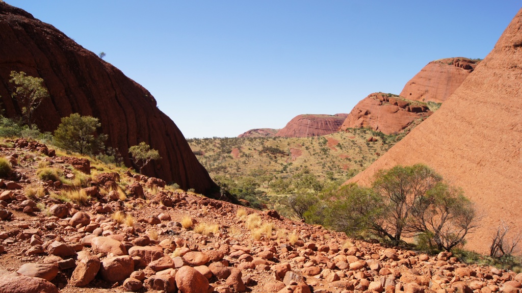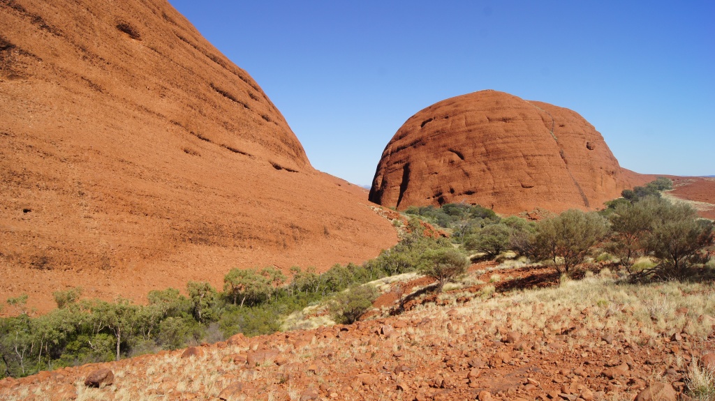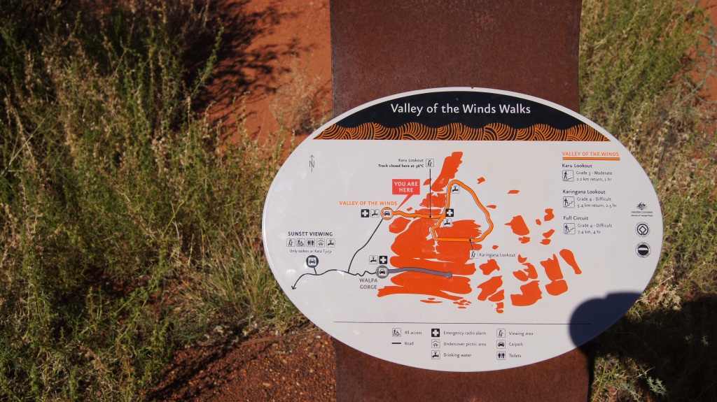 Kata Tjuta eksploruje się w zasadzie dwoma szlakami : Walpa garge i Valey of the Winds. My wybraliśmy oba szlaki, ten drugi w wersji krótkiej (do Kara Lookout).