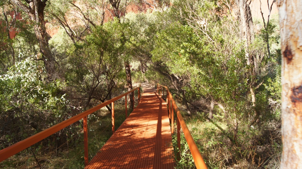 Szlak kończy się Kantju Gorge – wąwozem w którym jest małe jeziorko zasilane wodą spływającą z Uluru wodospadem w okresie opadów deszczu.