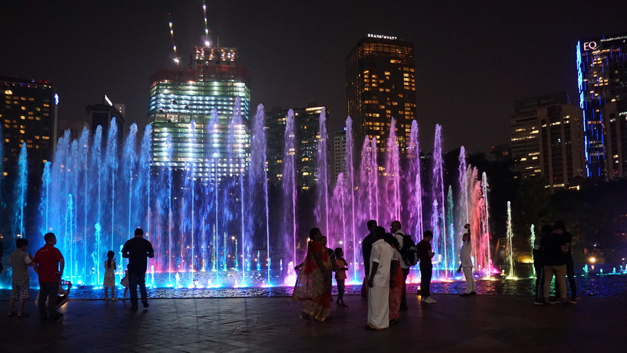 Jednak udało nam się wyjść na wieczorny spektakl fontann pod Petronas Towers.