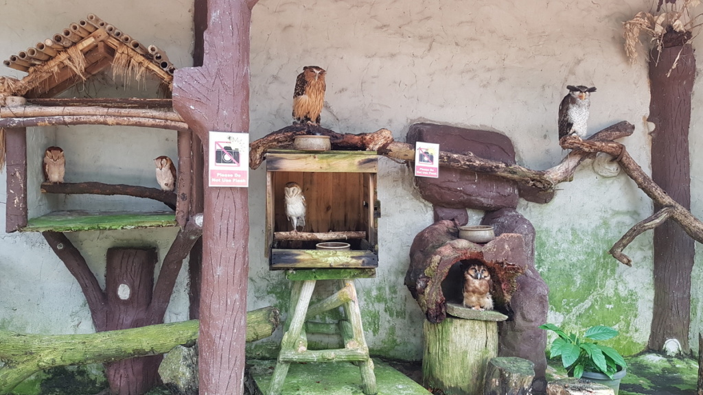 W parku znajduje sie ładny zbiór sów.