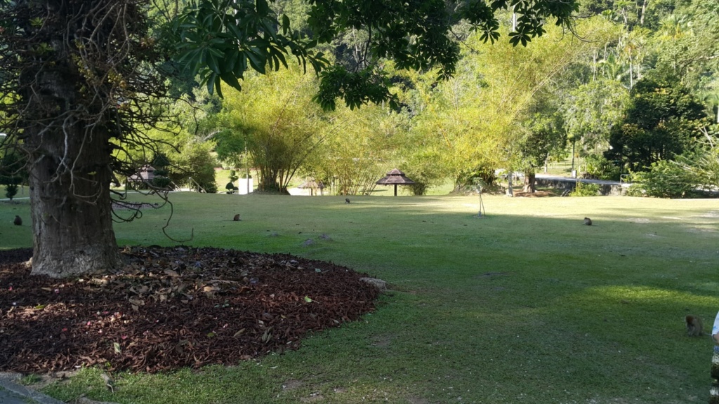 Ale nie przyjechaliśmy tu na „plażing” (Egipt bliżej), tylko na poznanie nowego. Pierwsza wyprawa – to Ogród Botaniczny. Dojazd z hotelu z pomocą Grab taxi za 10 RM.Ogród jest znany ze swojej zieleni z różnorodną florą i fauną. Niektóre z rzadkich i specjalnych roślin, które można spotkać w ogrodzie, to duże korzenie drzewa Sengkuang, drzewo Cannon Ball czyli czerpnia gujańska (wiki) z „kulkami armatnimi” zwisającymi z pni drzew, palma Pinang, czarna lilia i drzewo świecy. Są też bezczelne małpy makaki i wiewiórki Black Giant.