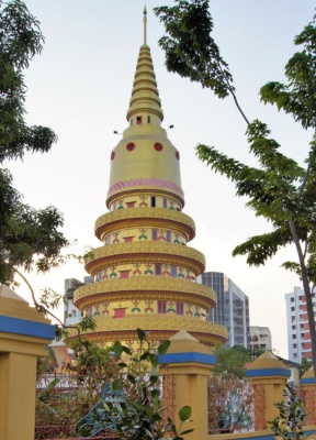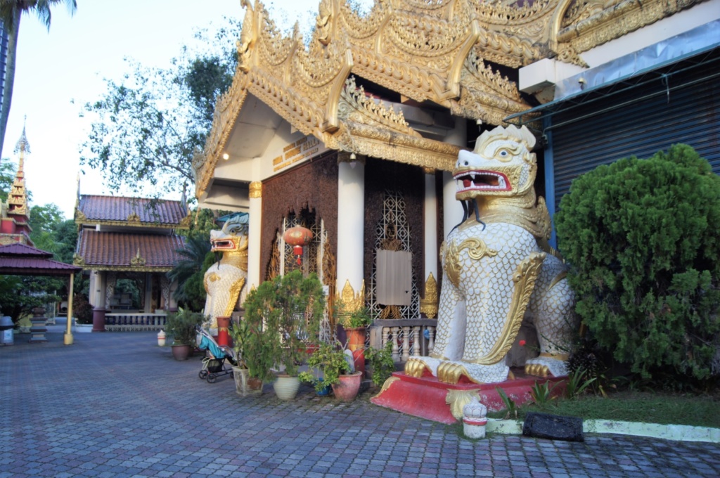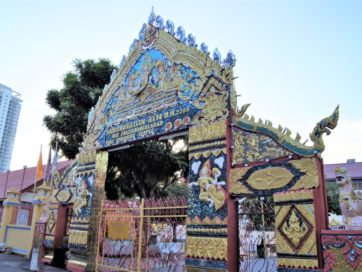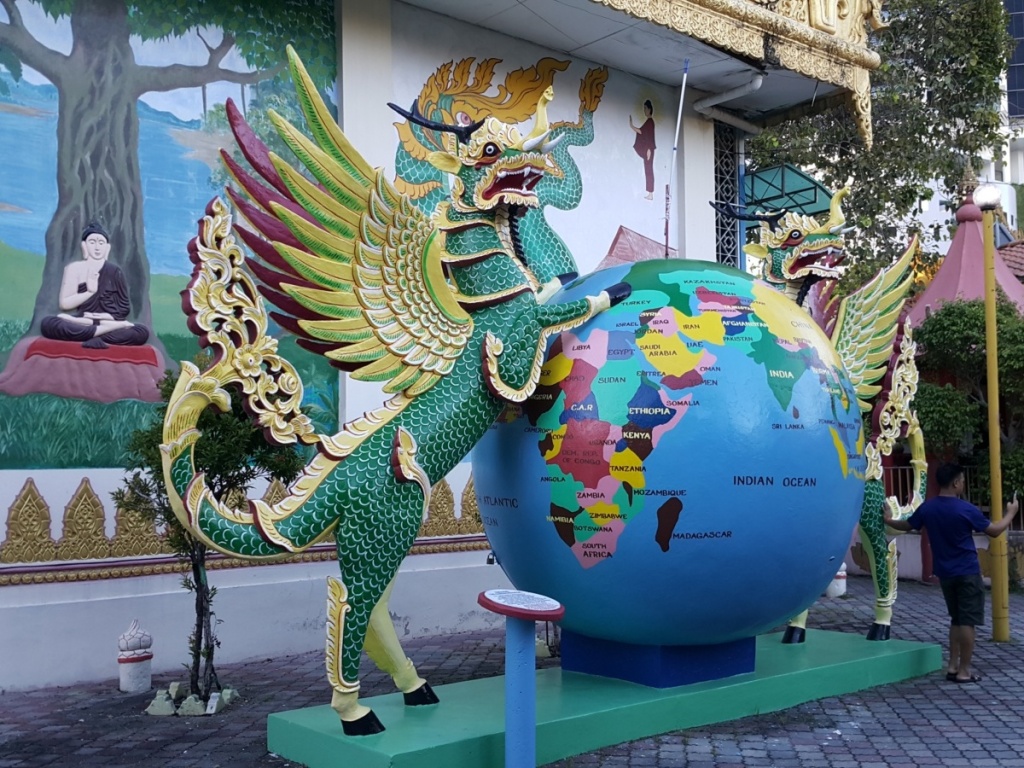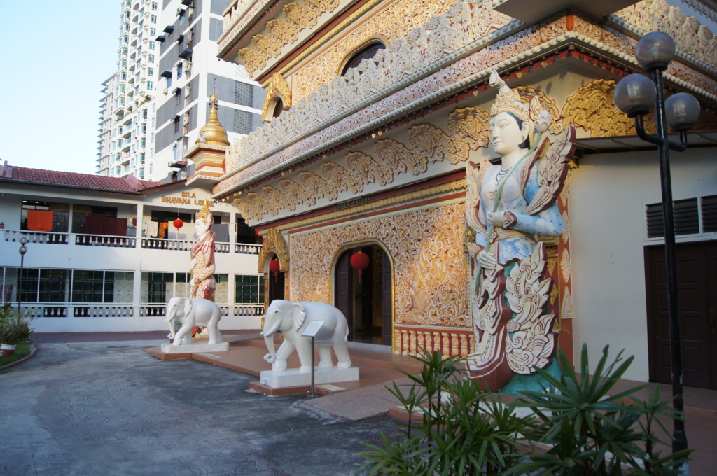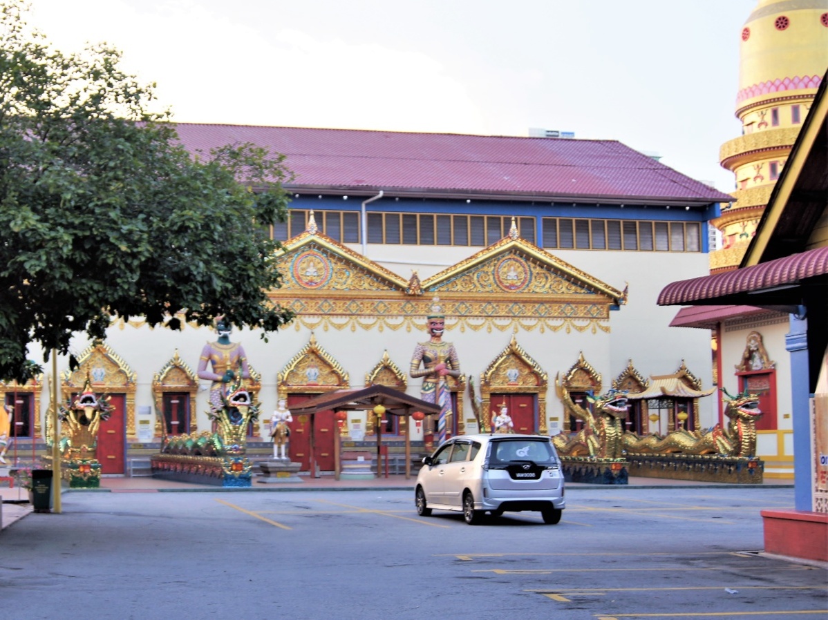 Naprzeciwko – przez ulicę znajduję się druga znana świątynia Georgetown – Wat Chayamangkalaram Thai Buddhist Temple. Jest to świątynia tajska z leżącym Buddą i piękną „ozłoconą” pagodą. Niestety czynna była tylko do 18.00, więc nie zwiedziliśmy jej w środku. Lecz i widoki z zewnątrz robą wrażenie.