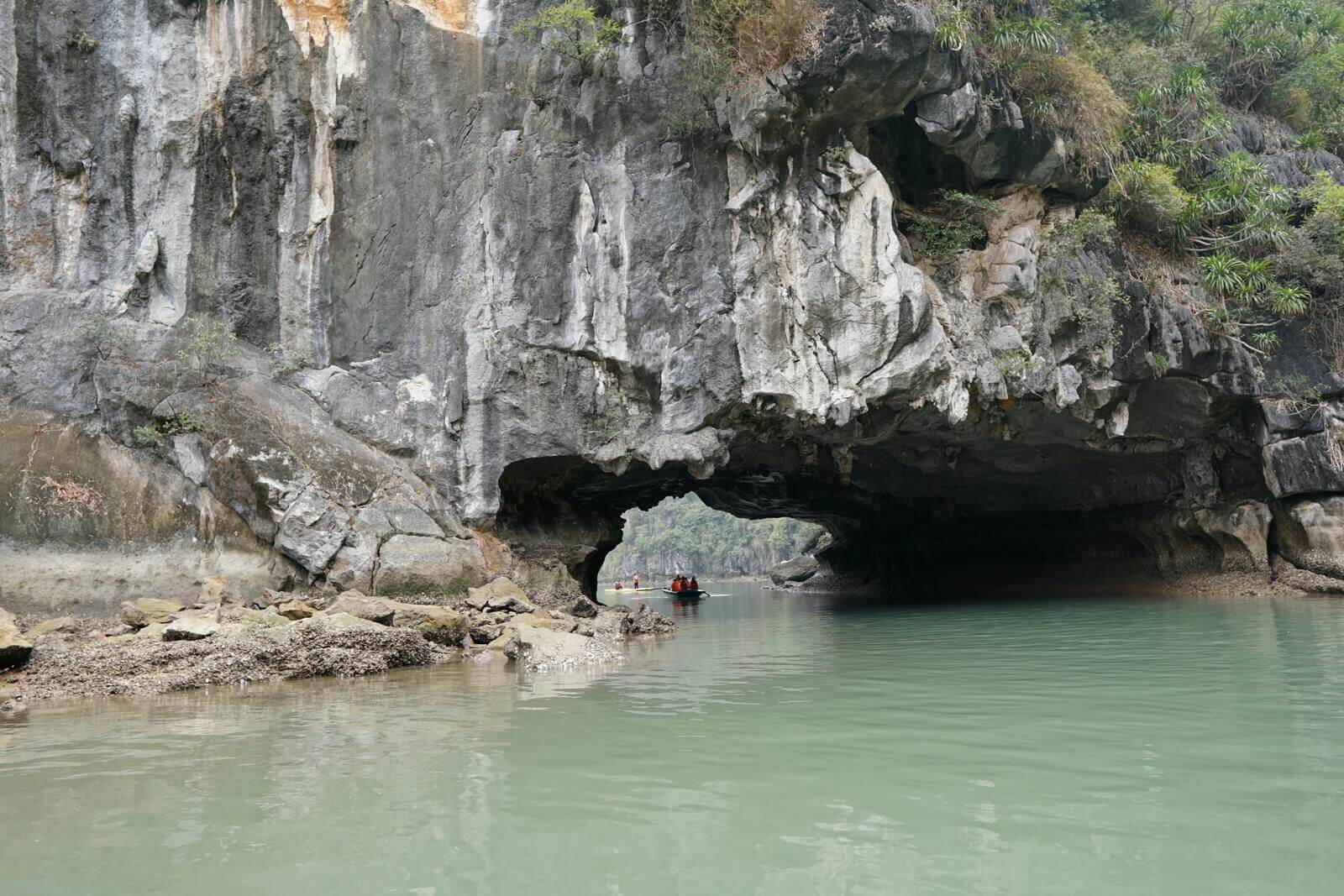 W programie było także płynięcie kajakiem lub łodzią bambusową. Wybraliśmy łódz. Przepłyneła ona pod dwoma górami. W jednym miejscu, po przepłynięciu małej jaskini ukazała się sekretna zatoka.