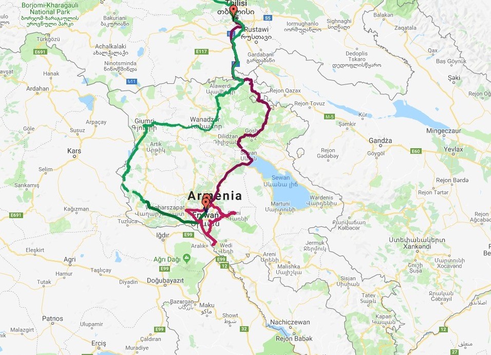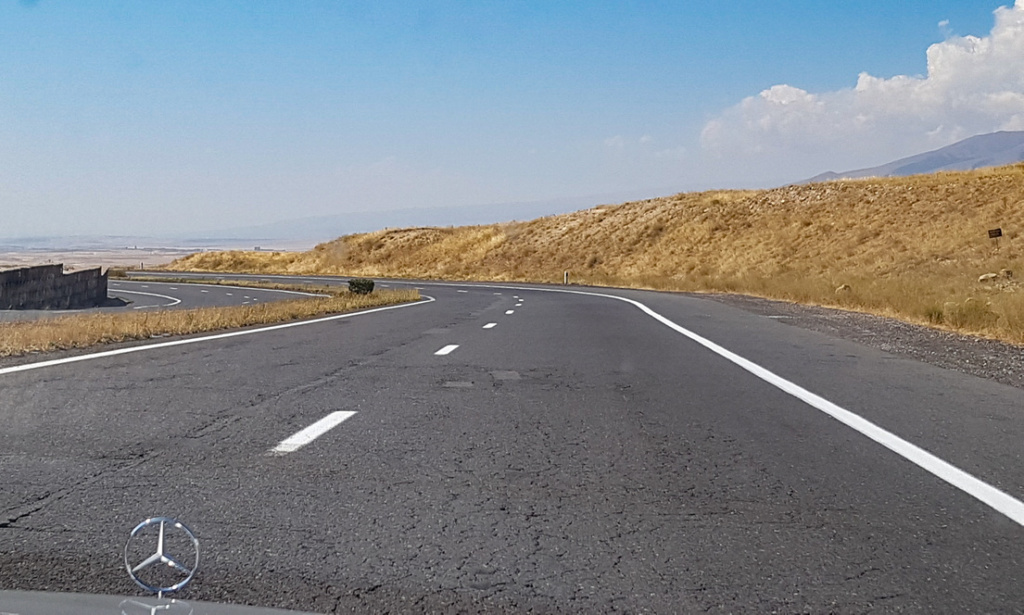 Wjeżdzając z Gruzji granice przekracza się właśnie przejeżdzając most na rzece Debet. Wniosek z tego, że droga do Erywania ciągle pnie się w górę. I tak jest do przełęczy blisko jeziora Sevan. Po przejechaniu tunelu na tej przełęczy radykalnie zmienia się krajobraz. Do przełęczu było zielono, nawet na dużych wysokościach, od teraz jazda w dół, ale wśród wzgórz pokrytych wysuszoną trawą. Dojeżdżając do Erywania ukazuje się piękna dolina, dolina Ararat nad którą góruje Ararat. W środku tej części doliny leży stolica Armeni – Erywań ( po polsku właśnie Erywań a nie jak kiedyś Erewań – według jakiejś komisji językowej – chociaż ormianie mówią że to Erewań). Widok na Ararat i Erywań byłby o wiele ładniejszy, gdyby nie chmury smogu unoszące się nad miastem, i prawdziwe chmury unoszące się prawie zawsze nad wyższym szczytem Araratu.